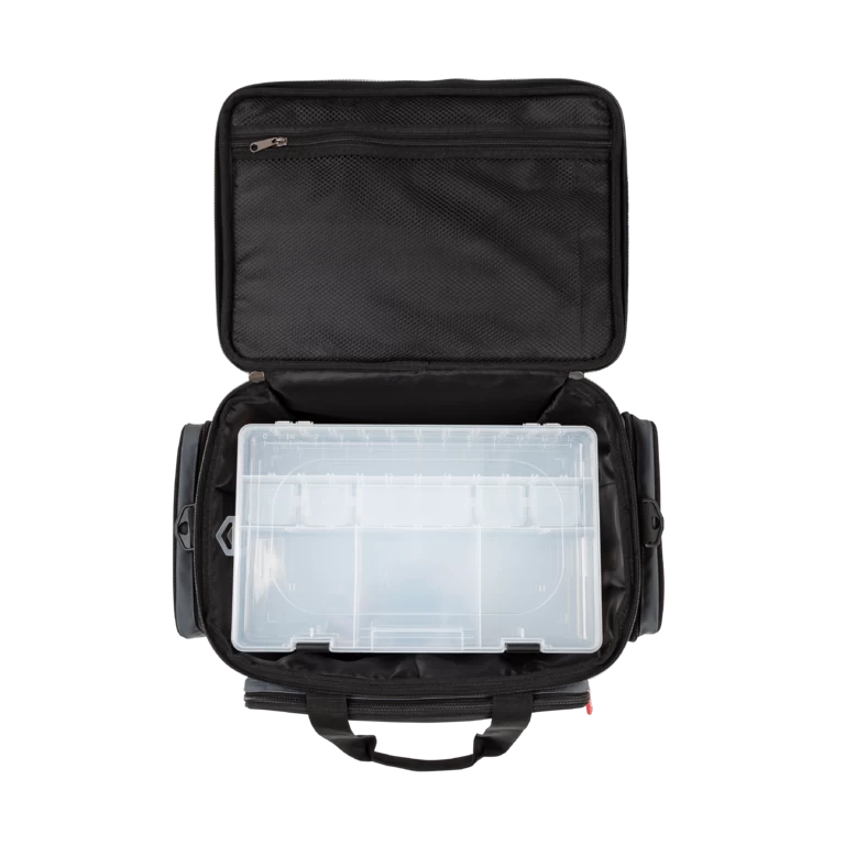 Hergestellt mit vollständig wasserdichtem Material und einem strapazierfähigen Boden ist diese Tasche zum Angeln vom Ufer oder vom Boot geeignet. Ausgestattet mit Tackle-Boxen und 3 Außentaschen haben Sie genug Stauraum für einen ganzen Angeltag. Werkzeughalter in der Fronttasche ermöglichen es Ihnen, wichtige Gegenstände an Ort und Stelle zu halten, wenn sie benötigt werden, und Netztaschen im Deckel und auf der Vorderseite ermöglichen die Aufbewahrung allen anderem Zubehör, dass Sie benötigen könnten.