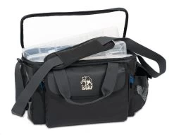 Absolut wasserdicht. Zwei Seitentaschen. Fronttasche innen mit Kunststoffeinteilungen für Blinker, Pilker usw. Dazu 3 hochwertige, unzerbrechliche, weichköderresistente Kunststoffboxen mit variablen Einteilungen.