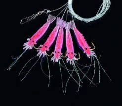 Dieses Vorfach gibt es in drei Farbvarianten und zwei Größen. Die kleine Größe ist für Hering und die große für Dorsch und Co. Das fängige Vorfach besitzt 5 Seitenarme mit Goldhaken und Shrimp-Imitaten. Die kleine Größe hat eine 0,45mm starke Hauptschnur und 0,35mm Mundschnur, während die große Variante eine 0,60mm Hauptschnur und 0,35mm Mundschnur besitzt.