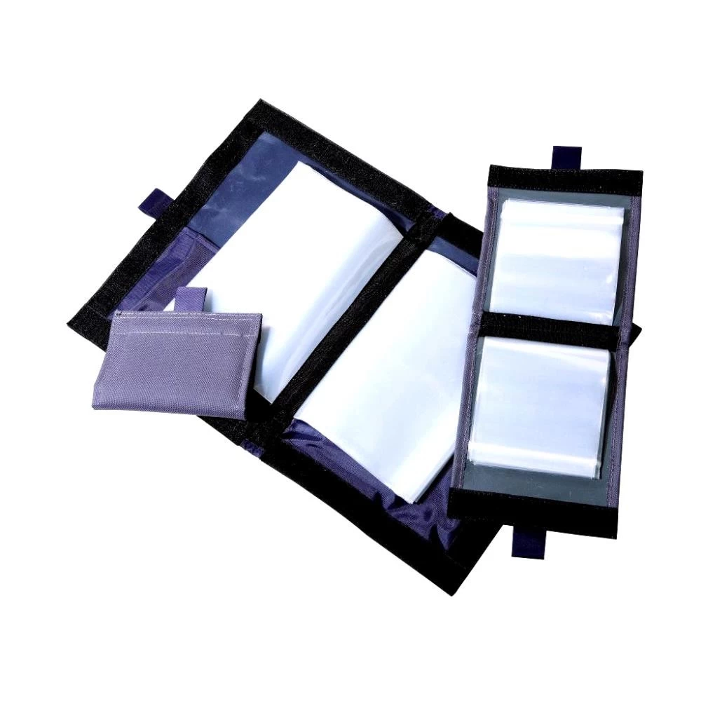 Die DEGA Vorfach-Mappe II 3 in 1 ist eine Modifikation unserer beliebten Klett-Tasche, speziell für das übersichtliche Unterbringen von Brandungspaternostern, Hakenpäckchen und vieles mehr. Sie besitzt große, verschließbare Klarsicht-Fächer und beinhaltet innen zusätzlich eine kleine und eine mittelgroße Tasche mit Einzelfächern. (Jeweils 10 St. Klarsichtfächer).