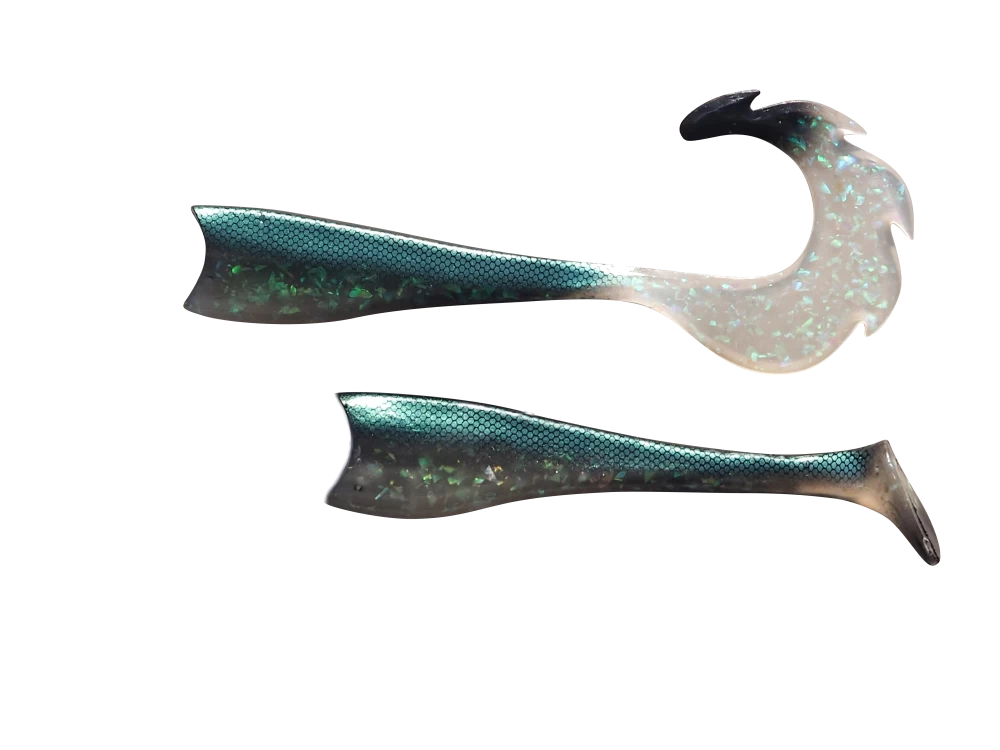 Der Hali Bandit wird mit zwei Schwänzen geliefert, einmal mit Paddle Tail und einmal mit Ruster-Tail. Dieser Köder ist auch hervorragend zum Schleppfischen geeignet.