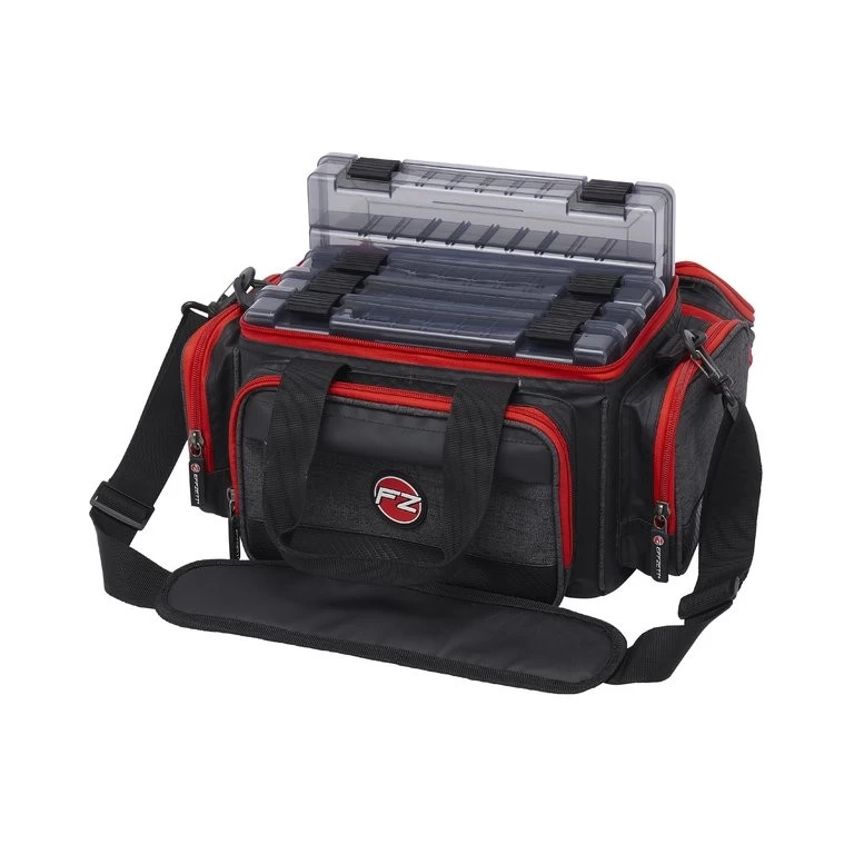 Die EFFZETT Pro-Tact Spinning Bag ist eine Nummer kleiner als die Pro-Tact Lure Carryall. Das bedeutet aber nicht, dass es sich um eine kleine Tasche handelt. 4 “M” -Köderboxen in Gunsmoke können gut organisiert werden und daneben bieten die Außentaschen der Pro-Tact Spinning Bag viel Platz für Zubehör, Werkzeug, Lizenzen und sogar Getränke. Diese mittelgroße Tasche ist perfekt für das aktive Angeln und lange Touren, bei denen eine größere Tasche hinderlich wäre. Bei der Entwicklung lag der Fokus auf maximierter Benutzerfreundlichkeit, d.h. es wurden nur Funktionen hinzugefügt, die praktische Vorteile schaffen. Es gibt ein Detail, das sich als so praktisch herausgestellt hat, dass es einen großen Unterschied macht: die Schnellzugriffstasche im Deckel. Diese 2,5 cm hohe Tasche folgt der Form des Deckels und bietet viel Platz für alle Dinge, die schnell und häufig benötigt werden. Brillant! Wie die meisten Modelle der EFFZETT Pro-Tact Luggage-Serie enthält die Spinning Bag eine Zange aus Carbonstahl mit Sprengring-, Schneide- und Crimp-Funktion.