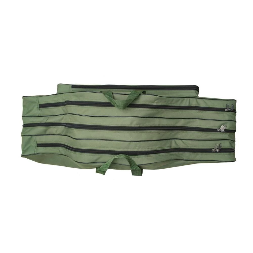 Dieses Rutenfutteral eignet sich ideal für den Transport von kurzen Ruten. Durch die 3 separaten Fächer mit Reißverschluss sowie Rollenaussparung, lassen sich 3 bis 5 montierte Ruten mit Rollen problemlos transportieren. Zusätzlich verfügt die Rutentasche über eine geräumige Außentasche für Zubehör wie bspw. Rutenhalter sowie zwei Schultergurte (Tragefunktion als Rucksack) und zusätzliche Tragegriffe.