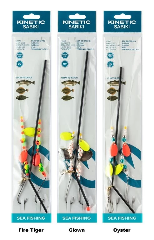 Diese farbenfrohen Rigs mit Spinnerblättern sind äußerst beliebt, besonders auf sauberem Boden. Der verschiebbare Ausleger bietet direkten Kontakt, auch mit schwereren Gewichten. Das ist das ideale Vorfach für den Fang von Dorsch, Steinbutt und Scholle.