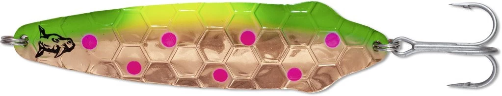 Jetzt kommt der beliebte Freddi Flutter in einer schweren Version auf den Markt. Durch sein deutlich höheres Gewicht sucht dieser Spoon bei Kurvenfahrten und bei Geschwindigkeitswechseln des Bootes mehr Wasserschichten ab als gewöhnliche Flutter Spoons. Durch einfache Manöver wie Verlangsamen und Beschleunigen des Bootes erzielen Sie so den auch beim Küstenangeln erfolgreichen „Spinnstopp“. Durch sein Eigengewicht trudelt der Freddi Heavy verführerisch und reizt auch in der Absinkphase zum Anbiss. Sie erhöhen so deutlich ihre Chancen! Kann auch Longline (also ohne Schlepphilfen wie Downrigger) vom Kleinboot oder geworfen eingesetzt werden. Der Blinker hat ein Gewicht von 42g und eine Länge von 110mm. Es stehen verschiedene Farben zur Auswahl. Die Hakengröße ist 1/0.