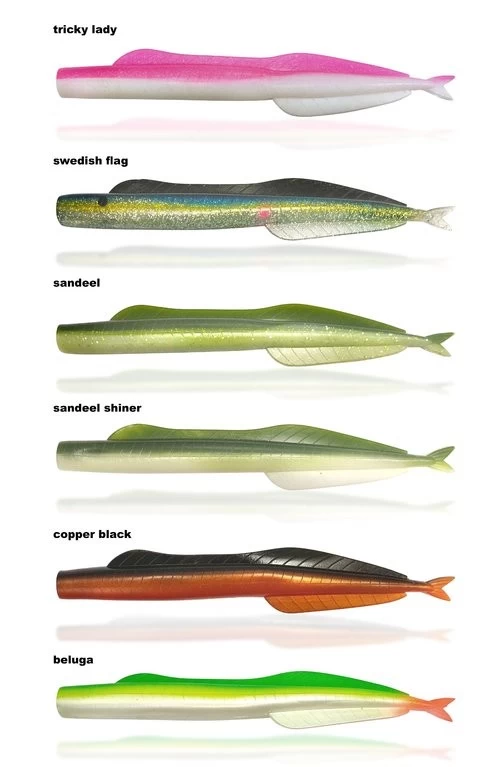 Dies sind Ersatzschwänze für den Rhino Sandaal-Baitholder. Das Set besteht aus zwei Schwänzen. Wenn die Bisse hart und heftig erfolgen, ist eine Reserve an Bord immer eine gute Idee. Der Köder ist 17cm lang und 17g schwer. Natürlich können diese Ersatzschwänze in Sandaalform auch mit herkömmlichen Jigköpfen gefischt werden.