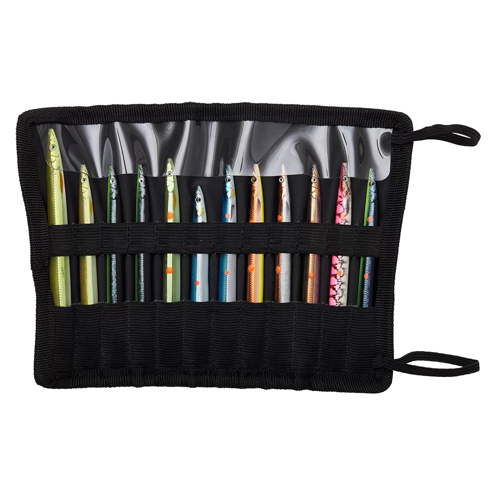 Rolltasche für unsere Line Thru-Köder aus weichem, strapazierfähigem 600D-Gewebe mit Innenfutter und elastischen Schlitzen. Passt optimal in die Taschen von Watjacken. Fasst 12 Köder mit einer Länge bis zu 15 cm.