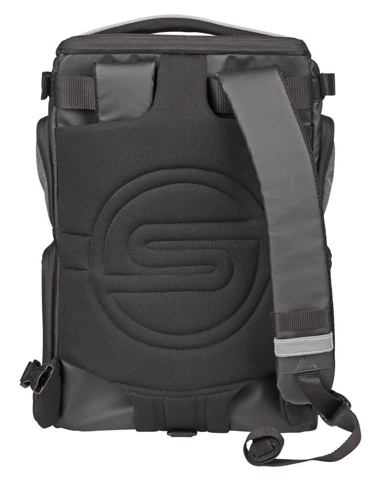 Der Backpack 35 kann als Rucksack oder als Umhängetasche verwendet werden. Löse einfach einen Gurt an der Seite Deiner Wahl und clipse den verbleibenden Gurt diagonal über den Rücken. Diese größere Version verfügt über zwei Rutenhalter und große Stabilität in der Tasche selbst.