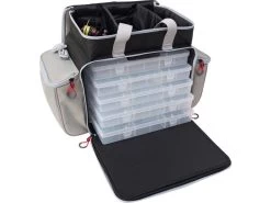 Kunstköder für das Vertikalangeln – aber auch für andere Angelarten – können prima in der W3 Vertical Master Bag untergebracht werden. Das Hauptfach beinhaltet bei Lieferung fünf Boxen in Standardgröße (36 x 23 x 5 cm). Diese Boxen können jederzeit durch gleich große Boxen ersetzt werden. Hinter der großen Frontklappe befindet sich eine klappbare Wand mit breiten aufgenähten Gummibändern, die Werkzeuge wie Zangen an Ort und Stelle halten. Für das obere Fach sind zwei Innenteiler im Lieferumfang. Die Klappe ist durchsichtig und bietet so auch bei geschlossener Tasche einen schnellen Überblick. Die W3 Vertical Master Bag hat zwei große Netztaschen, zwei große Seitentaschen für Zubehör, Tragegriffe und einen abnehmbaren gepolsterten Tragegurt.