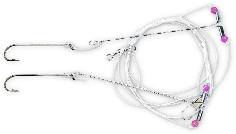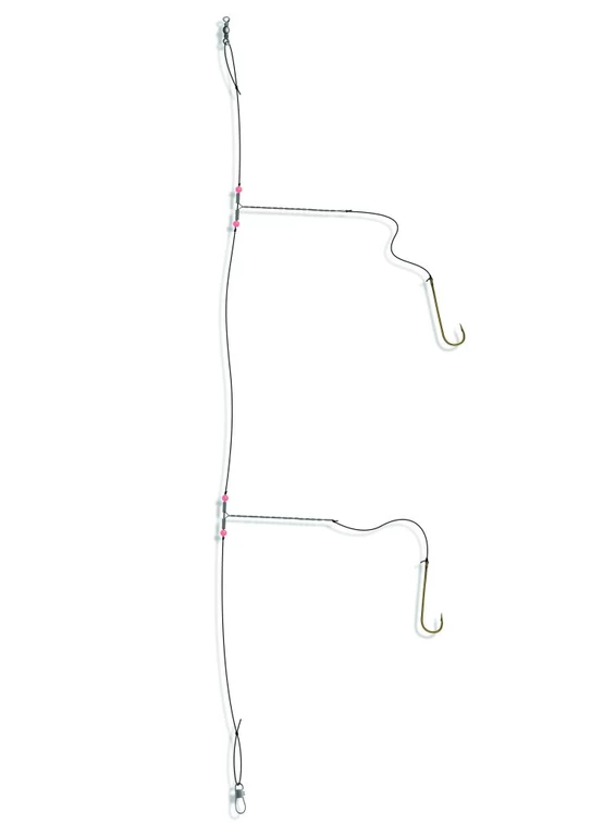 Dieses Buttsystem besteht aus zwei Seitenarmen mit Butthaken der Größe 2. Die Hauptschnur hat einen Durchmesser von 0,60mm und die Mundschnüre 0,40mm. Das gesamte Vorfach hat eine Länge von 100cm.