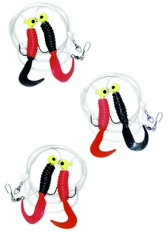 Dieses Vorfach besteht aus zwei Twistern mit einer Größe von 7,5cm. Das Vorfach besteht aus roten und schwarzen Twistern, welche in drei verschiedenen Farbkombinationen verfügbar sind. Die Hauptschnur hat eine Stärke von 0,70mm und die der Seitenarme von 0,65mm. Die Hakengröße ist je nach Modell 1/0 oder 3/0. Die Jigs haben eine Größe von 7,5cm.